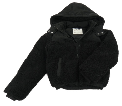 Černá huňatá zateplená bunda s šusťákem a kapucí F&F