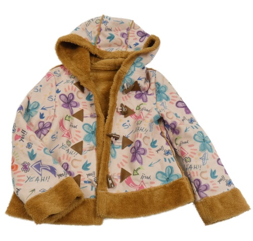 Růžovo-okrový semišový zateplený kabát s květy a kapucí Desigual