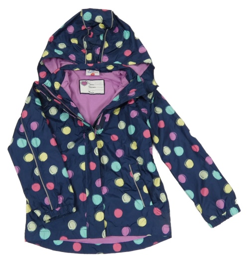 Tmavomodro-barevná puntíkatá šusťáková jarní bunda s kapucí Topolino