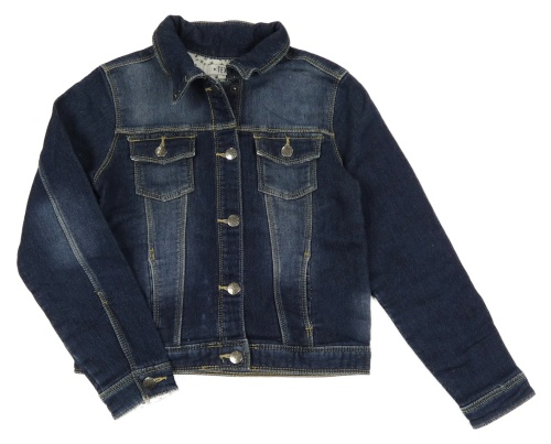 Tmavomodrá tepláková riflová crop bunda s límečkem TEX