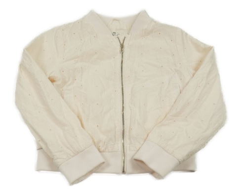 Smetanový plátěný jarní crop bomber s květy a madeirou H&M