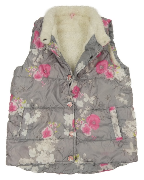 Šedá šusťáková prošívaná zateplená květovaná vesta