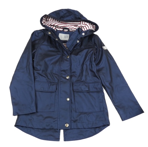 Tmavomodrá nepromokavá jarní parka s nášivkou a kapucí