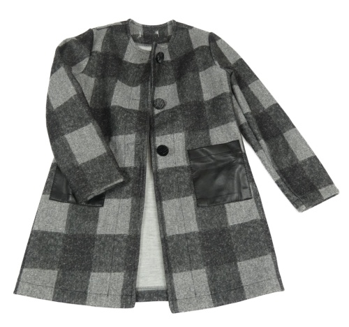 Šedo-černo-tmavošedý kostkovaný flaušový kabát