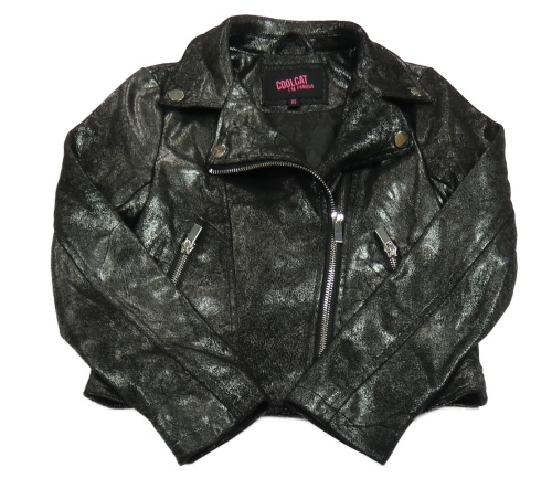 Černo-stříbrný třpytivý teplákový crop křivák