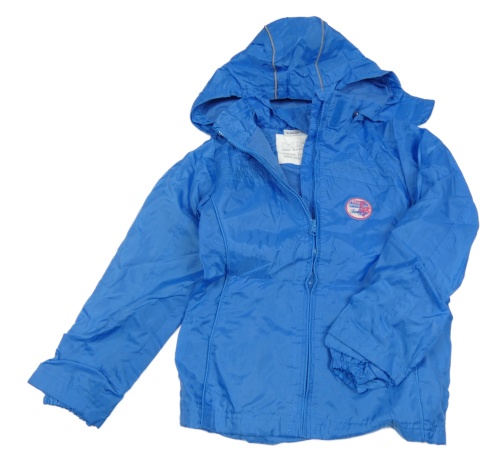 Modrá šusťáková jarní bunda s nášivkou a kapucí X-mail