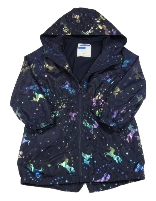 Tmavomodrá šusťáková jarní parka s jednorožci a kapucí Matalan