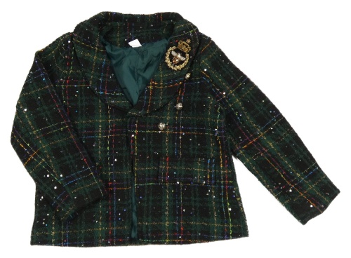 Zeleno-černý kostkovaný úpletový kabátek s flitry a gombíky