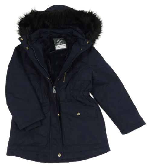 Tmavomodrá šusťáková zimní bunda s kapucí s kožešinou George