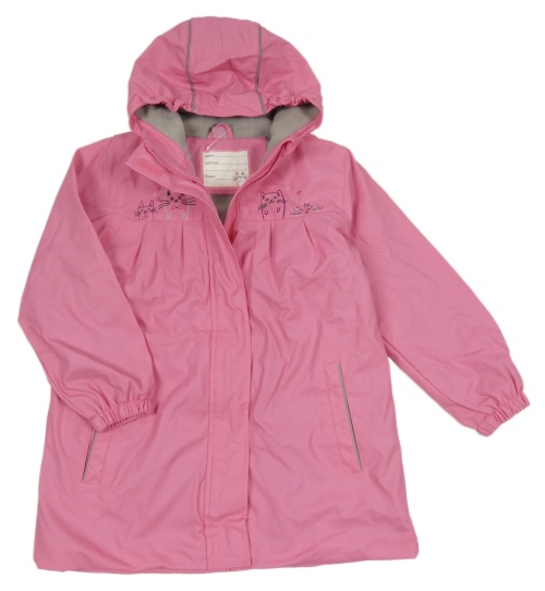 Růžový nepromokavý podzimní kabát s kočičkami a kapucí X-mail