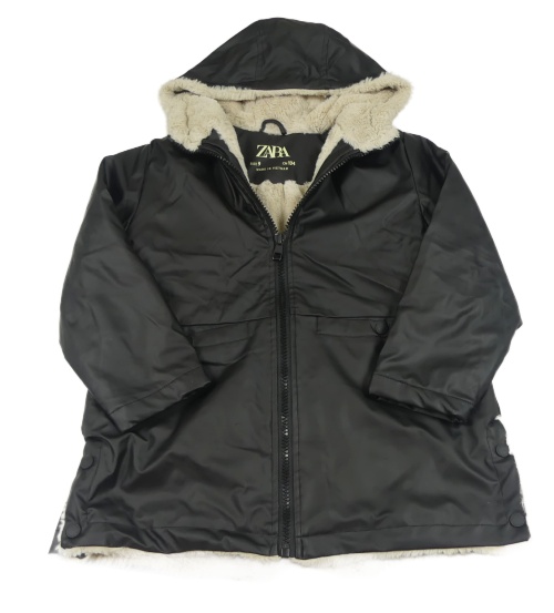 Černý nepromokavý zateplený kabát s kapucí ZARA