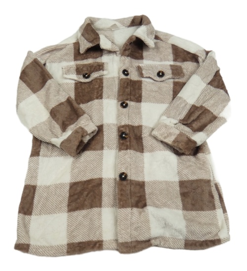 Hnědo-bílá kostkovaná chlupatá košilová bunda Shein