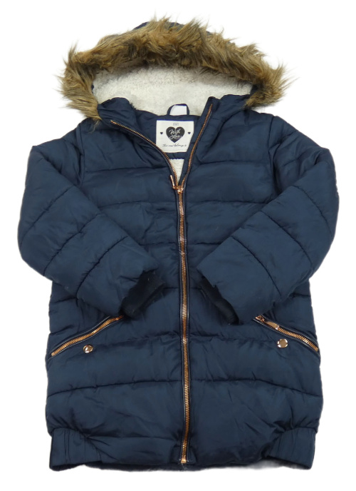 Tmavomodrý šusťákový zimní kabát a kapucí F&F