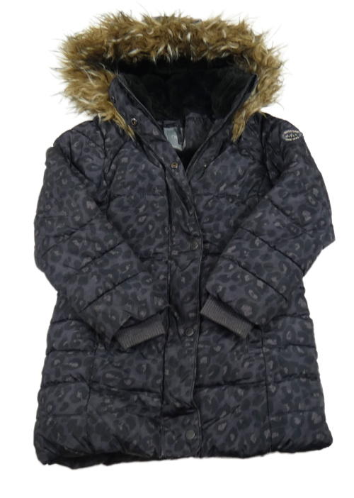 Lilakovo-černý leopardí šusťákový zimní kabát s kapucí Next