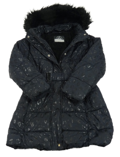 Tmavomodrý vzorovaný šusťákový zimní kabát s páskem a kapucí George