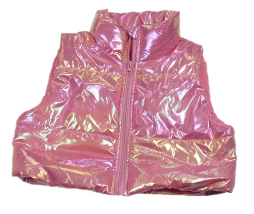 Růžová lesklá šusťáková zateplená crop vesta Shein