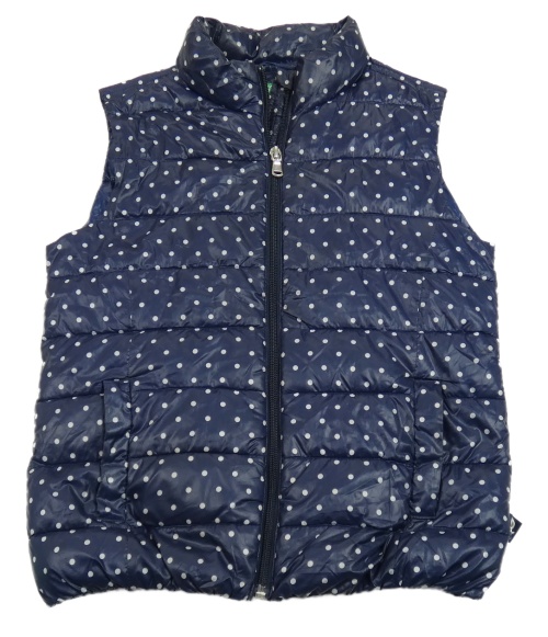 Tmavomodrá puntíkatá prošívaná šusťáková zateplená vesta Benetton