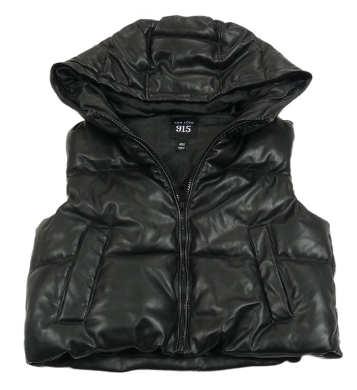 Černá koženková zateplená crop vesta s kapucí New Look