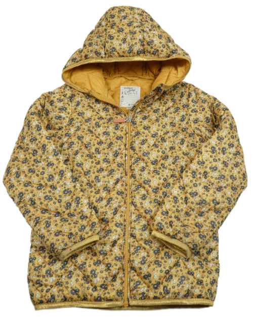 Hořčicová květovaná šusťáková lehce zateplená bunda s kapucí Vertbaudet