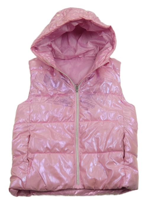 Růžová metalická šusťáková zateplená vesta s kapucí Dunnes