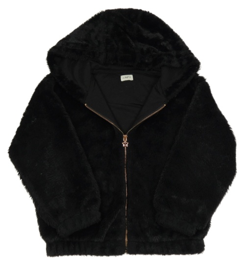Černá kožešinová podšitá bunda s kapucí F&F