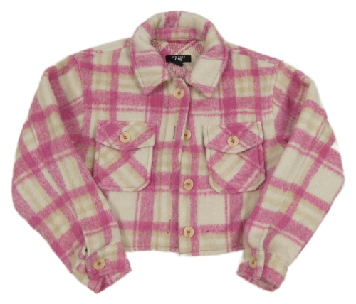 Béžovo-tmavorůžová kostkovaná košilová crop bunda New Look
