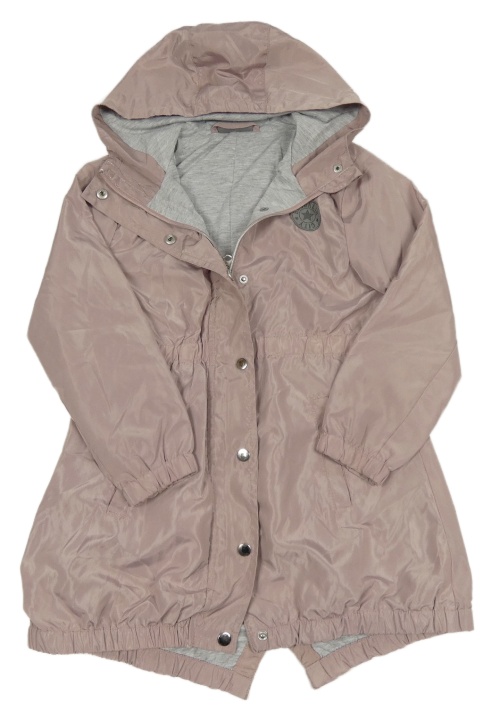 Pudrová šusťáková jarní parka s nášivkou a kapucí