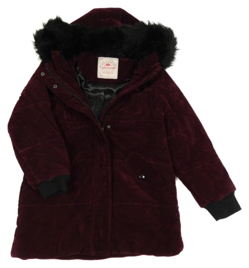 Vínový prošívaný semišový zimní kabát s kapucí s kožešinou George
