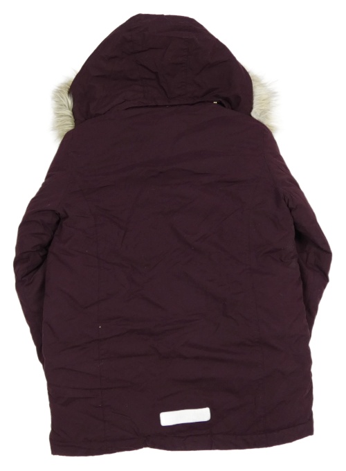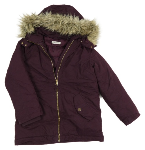 Tmavovínový šusťákový zimní kabát s odepínací kapucí s kožešinou H&M