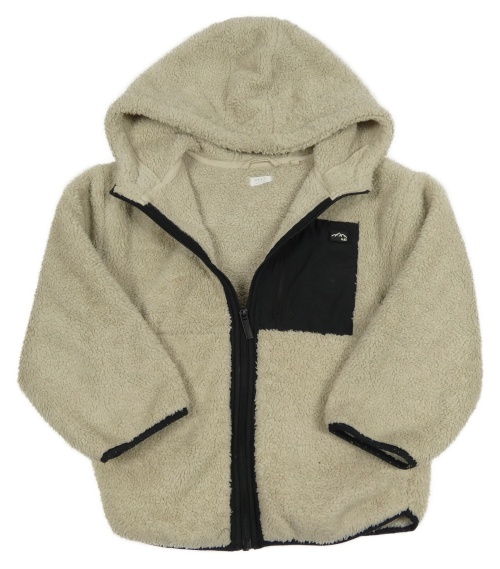 Světlešedo-černá huňatá bunda s nášivkou a kapucí Next
