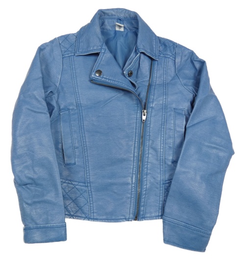 Modrý koženkový jarní crop křivák s prošíváním YIGGA