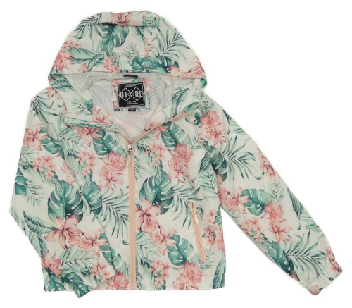 Bílo-zeleno-růžová květovaná šusťáková jarní bunda s kapucí C&A