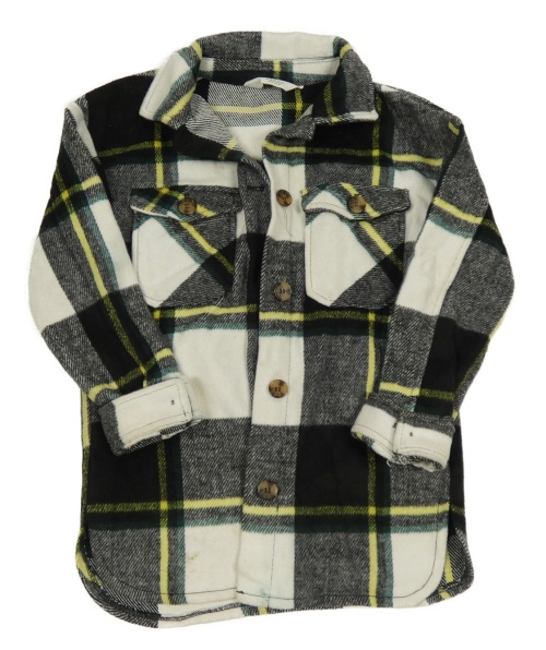Černo-bílo-zelená kostkovaná vlněná košilová bunda H&M