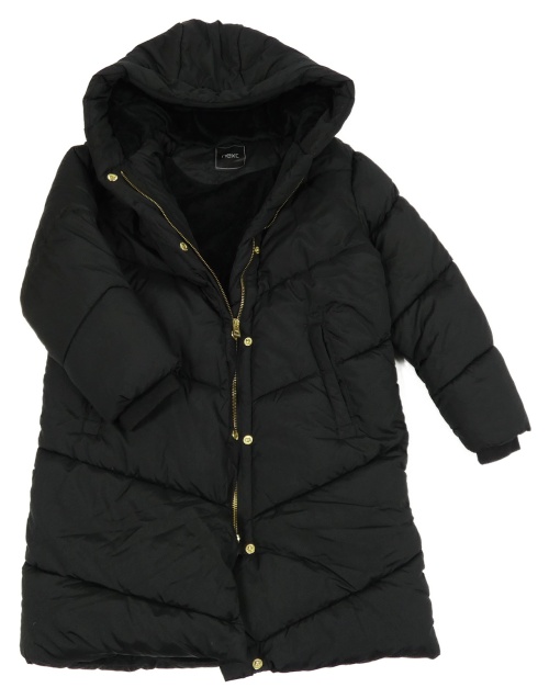 Černý prošívaný šusťákový zimní kabát s kapucí Next