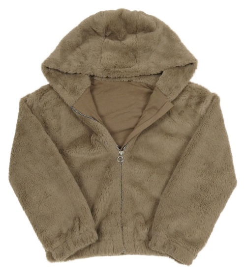 Hnědošedá kožešinová podšitá crop bunda s kapucí Nutmeg