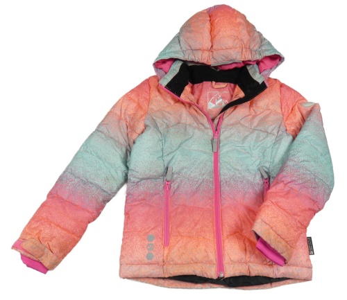 Korálovo-mátovo-růžová skvrnitá prošívaná šusťáková zimní lyžařská bunda s kapucí C&A