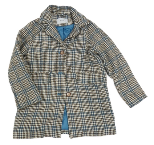 Bílo-hnědo-modrý kostkovaný zateplený kabát Reserved