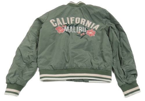 Khaki šusťákový jarní zateplený crop bomber s číslem a pruhy C&A