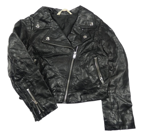 Černý koženkový jarní crop křivák s límečkem H&M