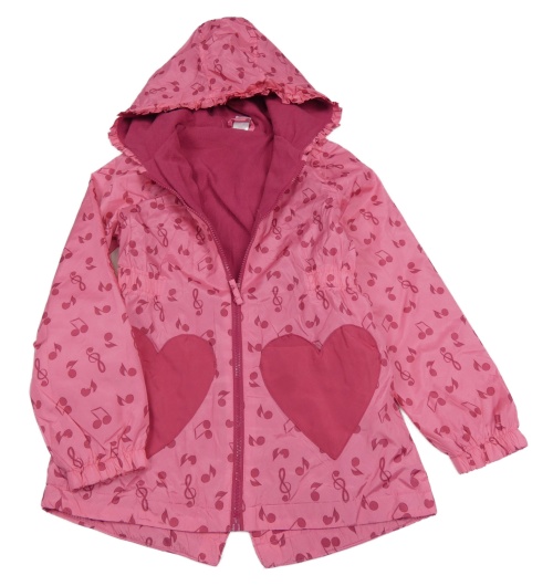 Růžová šusťáková zateplená parka s notami a kapucí Little kids