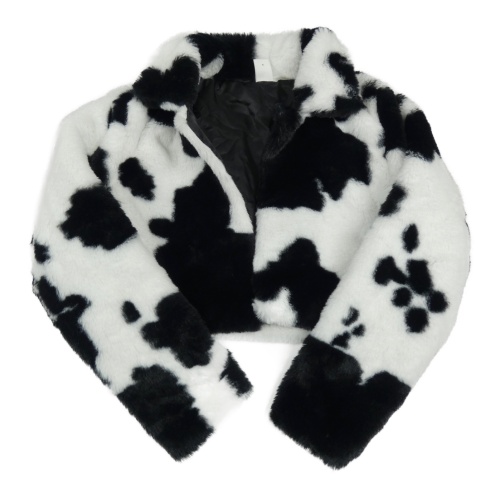 Bílo-černé kožešinové podšité bolérko s límečkem SHEIN