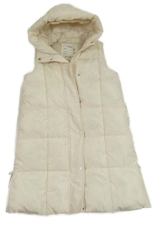 Smetanová prošívaná šusťáková dlouhá vesta s kapucí M&S