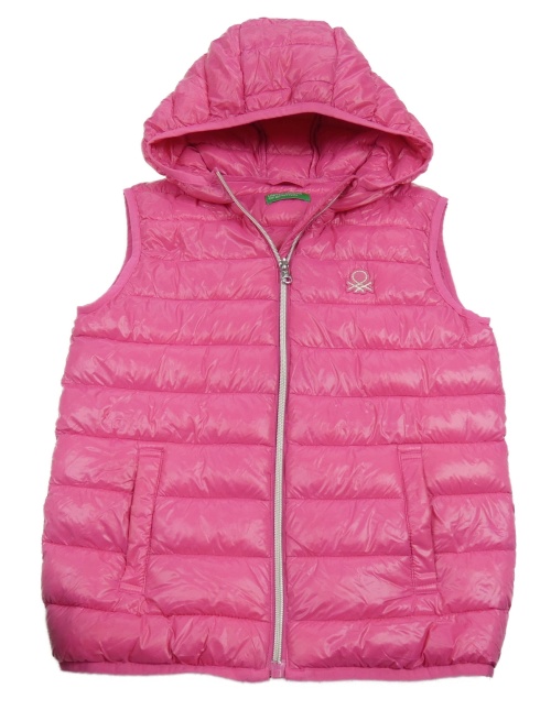 Fuchsiová šusťáková zateplená vesta s logem a kapucí Benetton