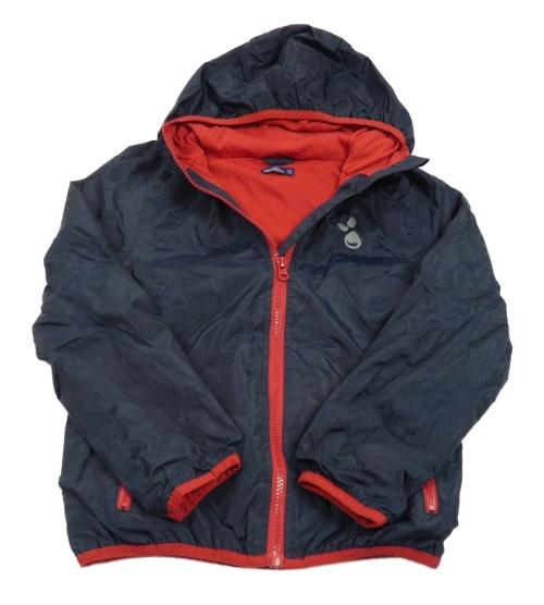 Tmavomodrá šusťáková jarní bunda s kapkami a kapucí