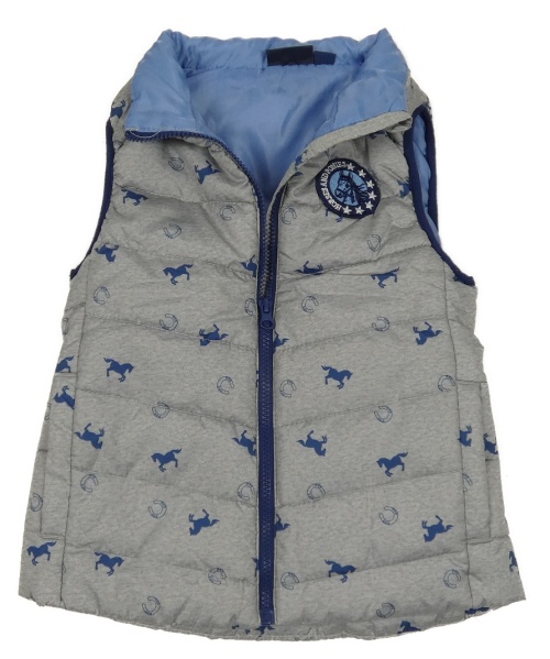 • Šedá melírovaná prošívaná šusťáková funkční zateplená jezdecká vesta s koníky a podkovami crane