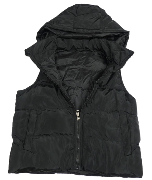 Černá šusťáková zateplená vesta s kapucí Shein