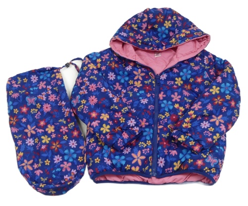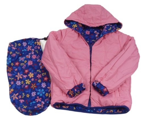 2set - Růžová šusťáková zateplená oboustranná bunda s kapucí + modrý květovaný sáček
