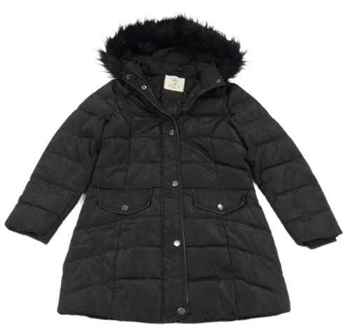 Černý šusťákový zimní kabát s kapucí s kožešinou Yd.