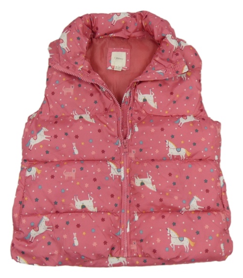 Růžová šusťáková zateplená vesta s jednorožci a hvězdami Sfera