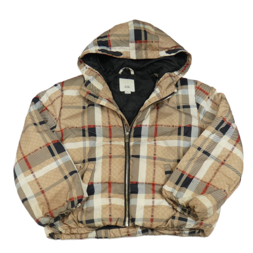 Hnědo-černo-krémová kostkovaná šusťáková zimní bunda s kapucí River Island